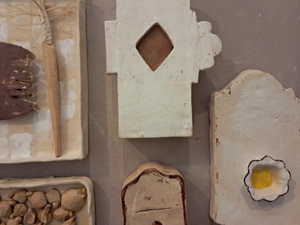 Le sue opere parlano di luoghi vissuti e accoglienti – incubatrici, contenitori, case, conchiglie… –, e del passato come presenza rassicurante e allo stesso tempo misteriosa. Sono fatte principalmente di terra, utilizzata sia come impasto plastico sia come finitura.